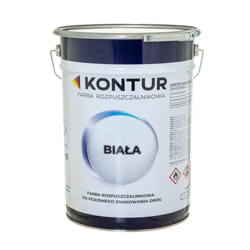 Farba drogowa biała Kontur to najwyższej jakości farba drogowa dedykowana do poziomego znakowania dróg, parkingów, ulic, placów oraz powierzchni przemysłowych i garaży. Nasza farba do malowania pasów drogowych sprawdzi się do tworzenia nowych linii i odnawiania oznakowań poziomych. Biała farba drogowa Kontur wykazuje wyjątkową odporność na ścieranie, promieniowanie UV oraz działanie czynników atmosferycznych, dzięki czemu zachowuje intensywną biel i widoczność przez długi czas.